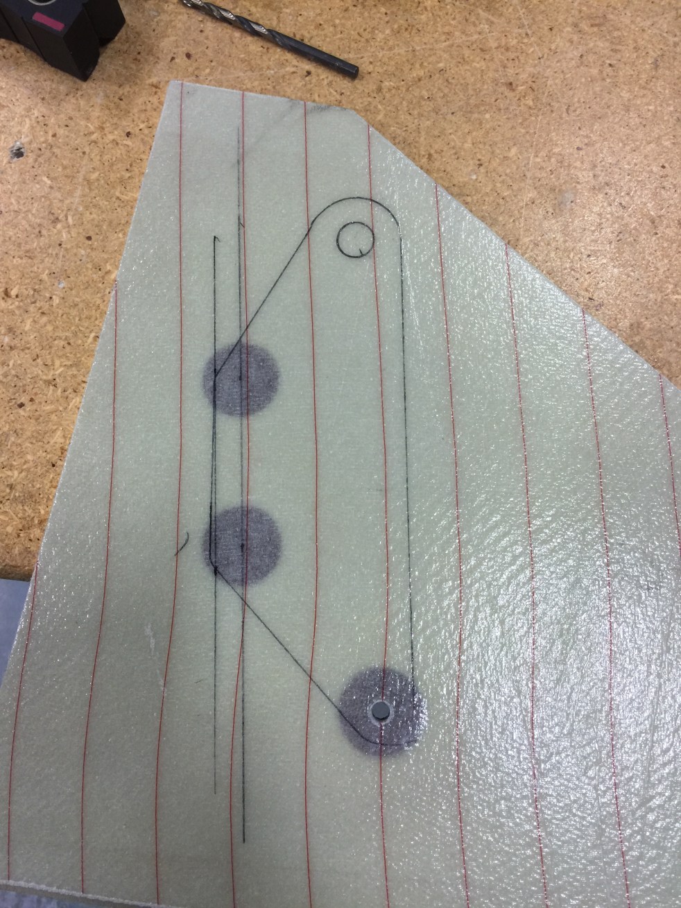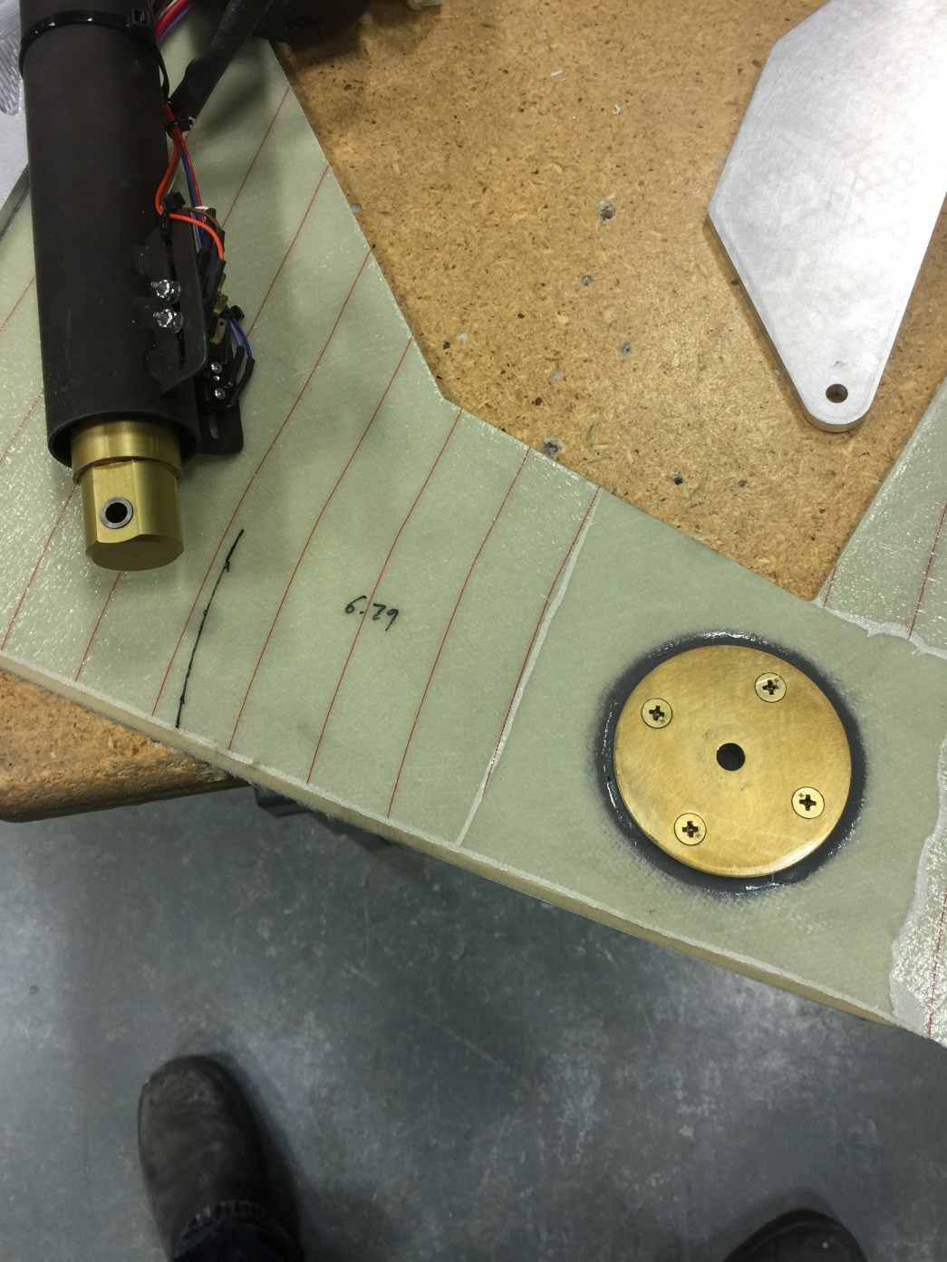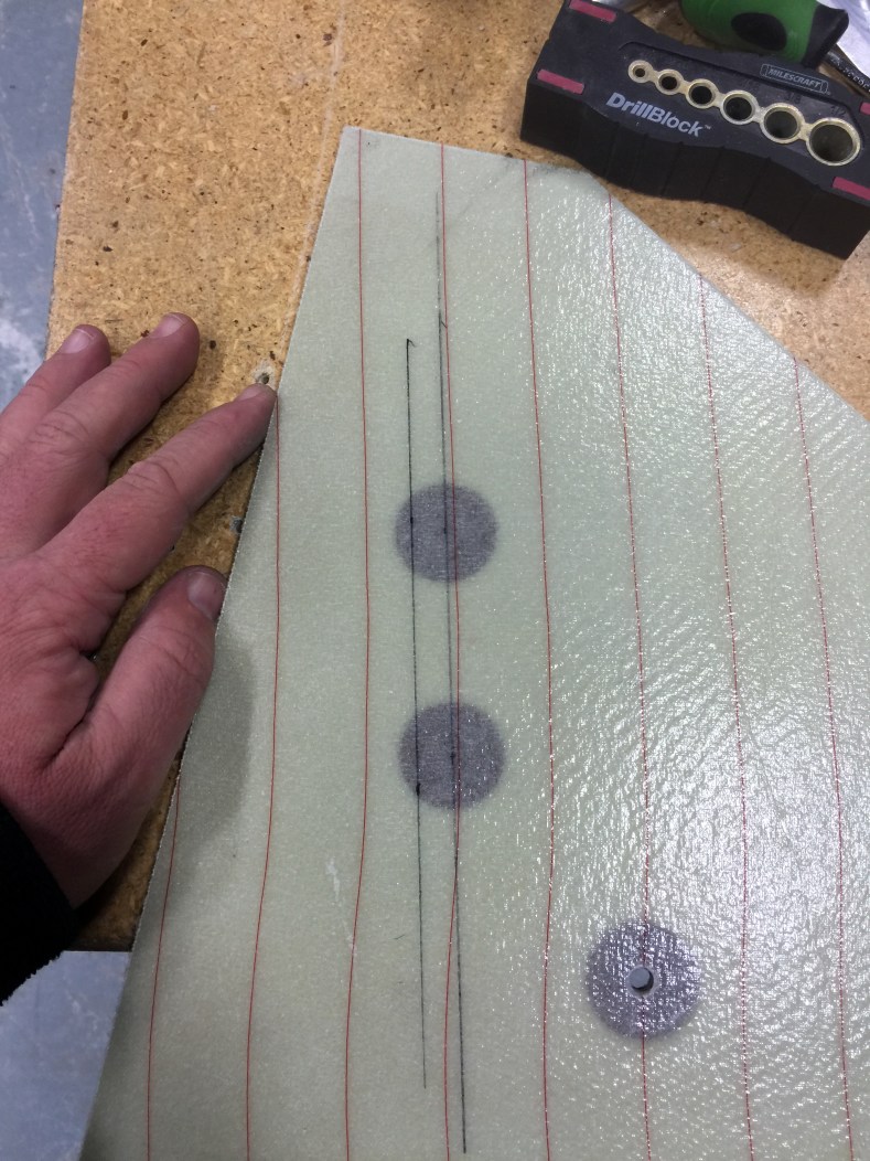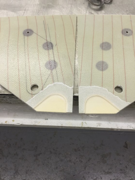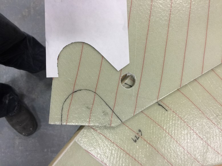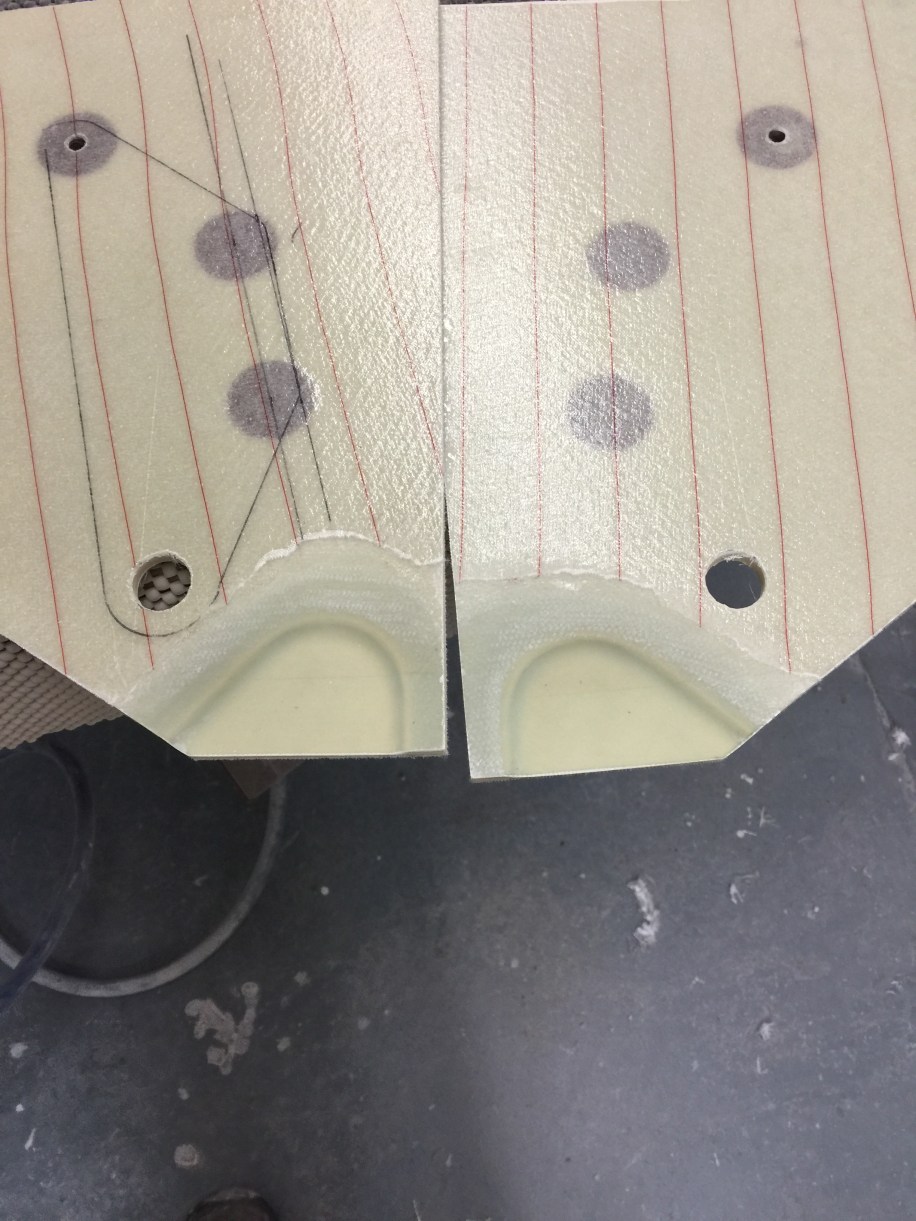 I recessed the glass and core to create clearance for the actuator. I wish I had done this before I glassed the NG30s but I didn’t think that far ahead. I made a rubbing of the recess onto a piece of paper.