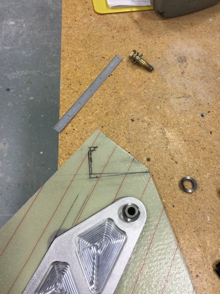 I then marked out the arc that the NG3 and NG4 would be taking as the gear extends or retracts.
